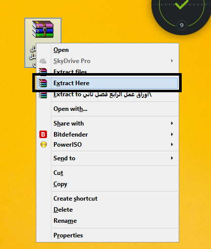 أولا كلك يمين على الملف كما في الصورة واختيار فك الضغط كما في الصورة التالية