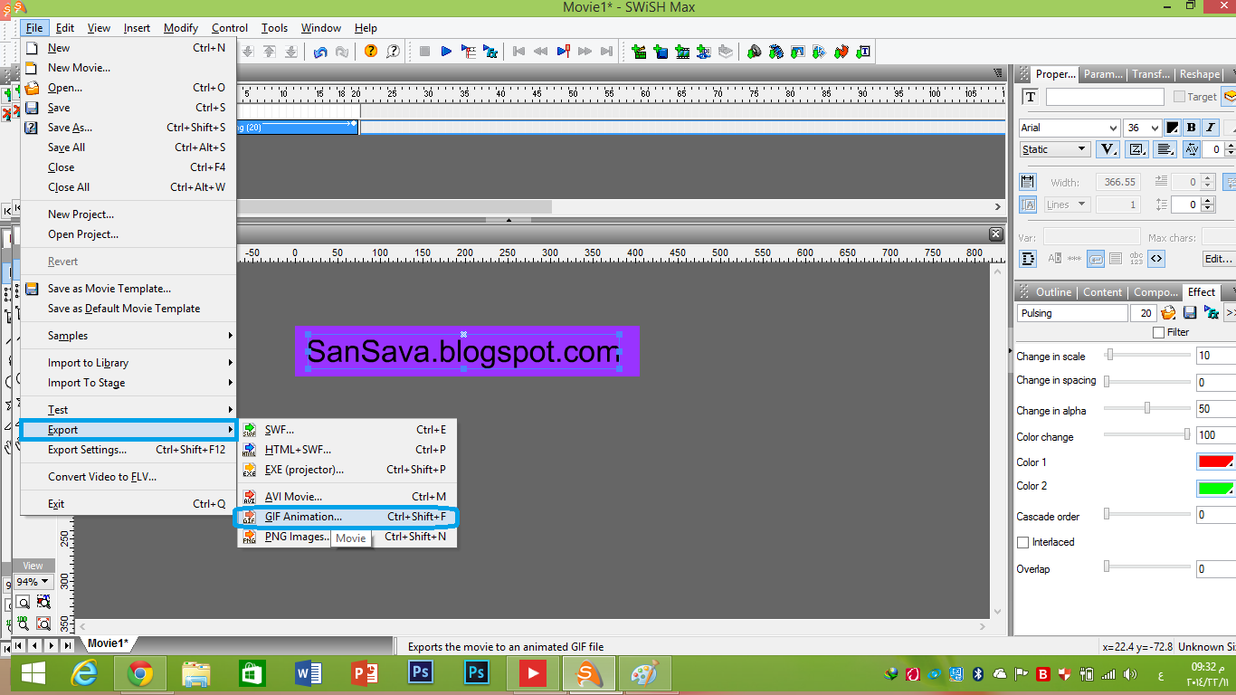 السلام عليكم احبابي في الله ، كيف حالكم ، ان شاء الله تمام ، اليوم حابب اقدم لكم طريقة لانشاء صورة متحركة ببرنامج الـ ( SWiSH Max4 ) بسرعة وسهولة لمن يعرف هذا البرنامج ، في البداية وقبل الدخول في الطريقة والبرامج المستخدمة في الشرح اود ان اقوق لكم اني لن ارفق البرنامج في هذه التدوينه ، لذلك انصحك بالبحث عن البرنامج على الانترنت . بالنسبة للصورة المتحركة التي سنقوم بانشائها ستكون بامتداد( Gif) المعروفة والمشهورة جداً .