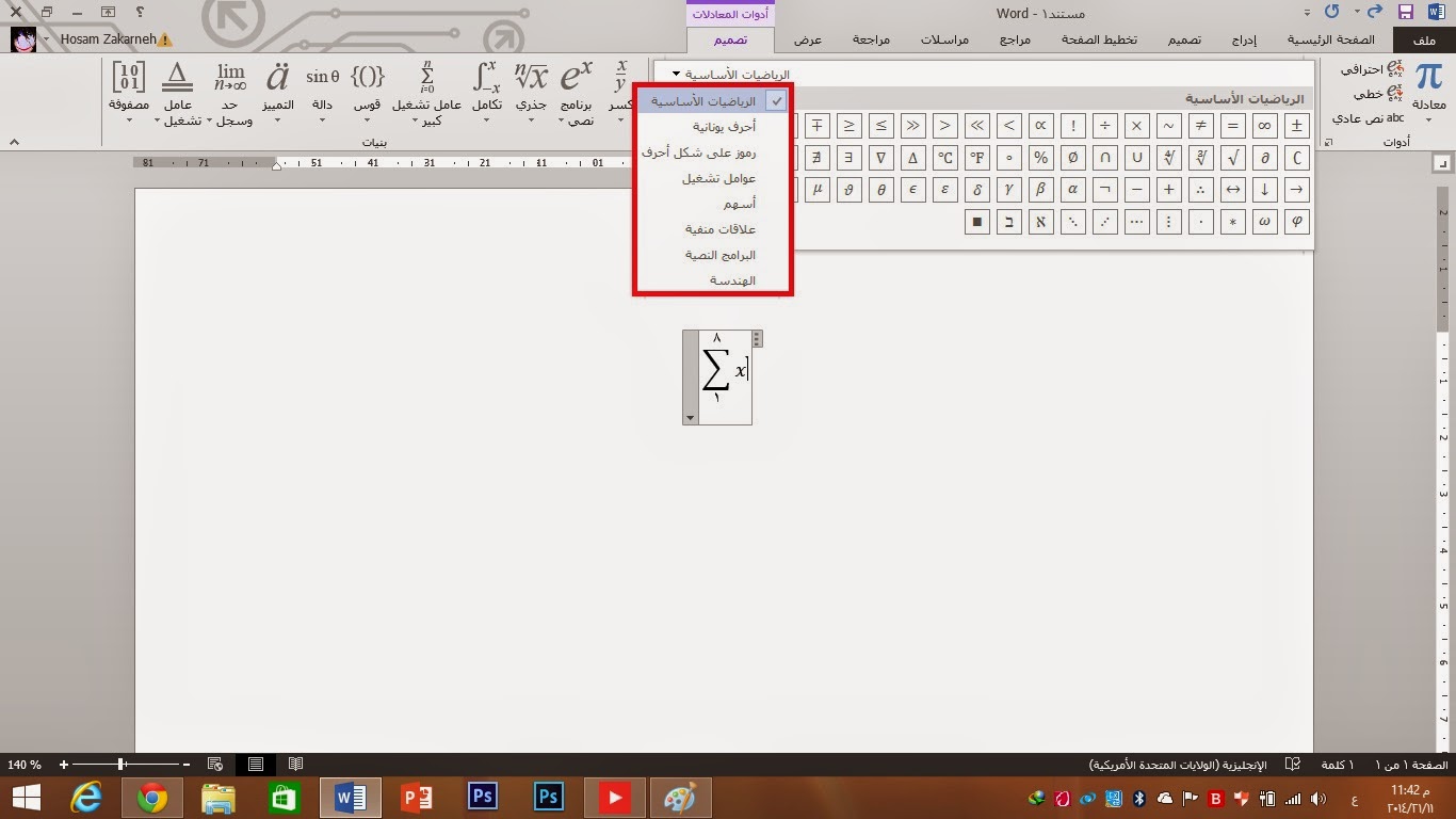 اقدم لكم طريقة كتابة الرموز الرياضية داخل برنامج تحرير النصوص الشهير الـ Word 2010-2013 ، فالكثير منا لا يعلم كيفية كتابة الرموز داخل البرنامج وباللغة العربية ( الاصح بالارقام الهندية ) ، فهي طريقة سهلة لا تحتاج الى اي برامج فقط تحتاج الى بعض التركيز منك عزيزي الزائر . تابع الشرح معي