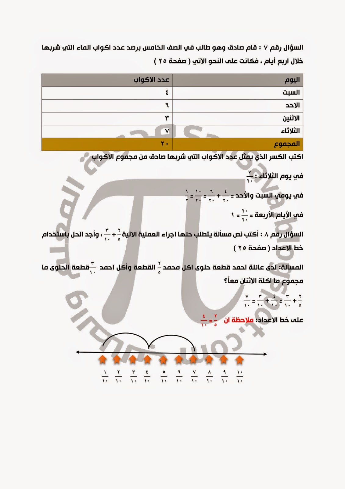 السلام عليكم احبابي الطلاب ، اقدم لكم اليوم حل لدرس من دروس الرياضيات ( جمع الكسور ) الصف الخامس الاساسي المنهاج الفلسطيني ، هنا مباشرة على الموقع الخاص بالخدمات التعليمية للطلاب ، وقد تلقيت هذا الطلب عبر صفحتنا (رياضيات من اجل الحياة ) ، التي من خلالها نستقبل الطلبات .