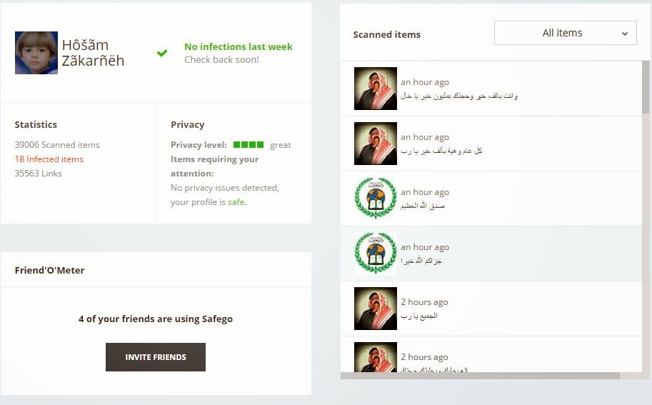 سنقوم بهذه الخطوة باستخدام " Bitdefender Safego اضغط هنا للدخول على التطبيق بالازرق على اسم التطبيق " الخدمة من شركة الحماية الاولى عالمياً في هذا المجال . Bitdefender Safego هي تطبيق على الفيس بوك يقوم بحمايتك على مدار 24 ساعة في اليوم وهي خدمة مجانية من شركة الحماية ستقوم بحماية الفيس بوك الخاص بك من الاختراق بواسطة الروابط المشبوهة والتعليقات المحقونة بروابط خبيثة تودي بحسابك الفيس بوك ،