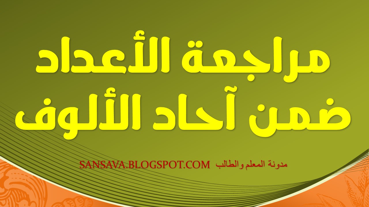 السلام عليكم اعزائي الطلاب اليوم نقدم لكم (شرح درس الرياضيات مراجعة الأعداد ضمن آحاد الألوف-الصف الرابع-الفصل الاول ) ، بالفيديو من مدونة المعلم والطالب ، تابعونا لجديد الدروس بالفيديو . شرح الاستاذ علاء زكارنة واخراج الاستاذ حسام زكارنة . مدونة المعلم تقدم دروساً متسلسلة للمناهج الدراسية ، لسنا الوحيدون ولكننا الافضل . لا تنسى الاشتراك في صفحتنا " رياضيات من اجل الحياة " .
