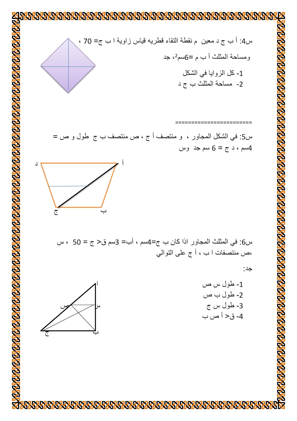 السلام عليكم احبابي في الله ، اليوم اقدم لكم اسئلة اثرائية في مادة الرياضيات للصف الثامن على وحدة الهندسة وهي مجموعة من الاسئلة ، على وحدة الهندسة تثري معلومات الطالب ، وتساعدة على الاستيعاب وترسيخ المفاهيم .