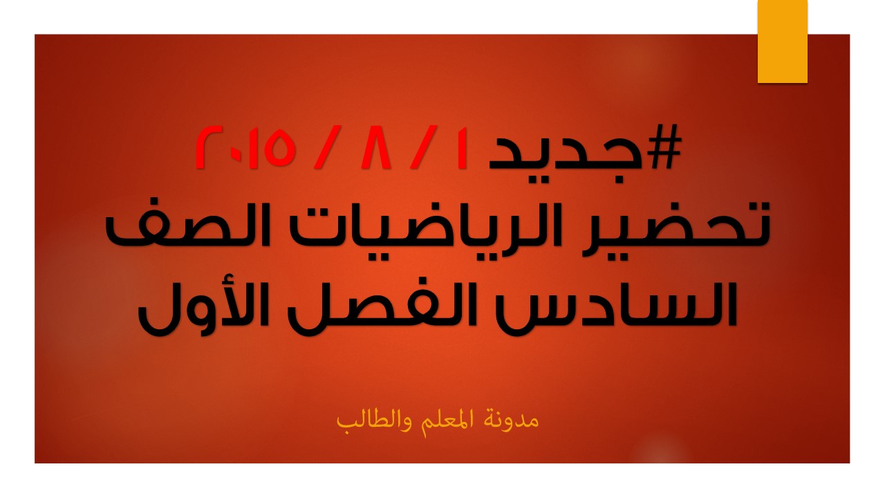 السلام عليكم احبابي في الله ، اليوم أقدم لكم ما كنتم تنتظرون ، وما كنتم تهتمون به ، أقدم لكم تحضير الرياضيات للصف السادس ، على شكل ملف PDF جديد كلياً لا يتوفر على اي موقع على الانترنت سوى مدونتنا الرائعة بكم . التحضير يعتبر من أفضل التحضيرات الموجودة لدينا وهو من انتاجنا . كذلك مع كثير من التحضيرات . التنسيقات رائعة وجميلة ومناسبة . مع اجمل الخطوط المتوفرة والمتناسقة والمتناغمة .