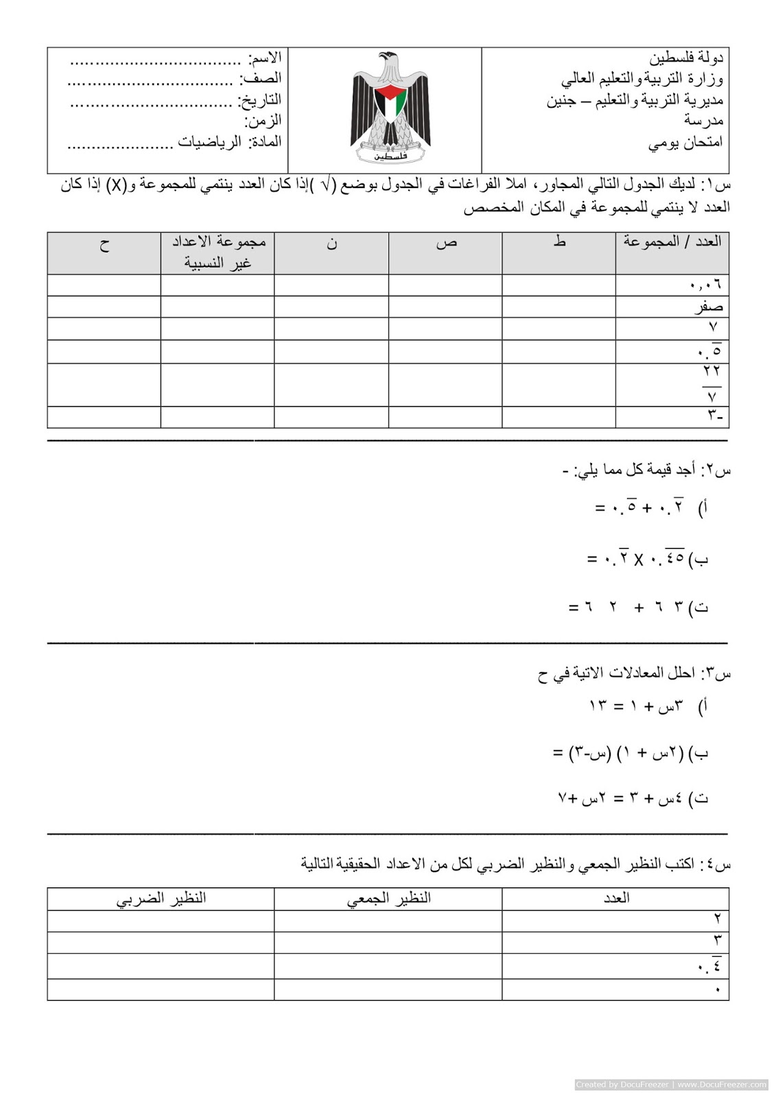 السلام عليكم احبابي في الله اليوم اقدم لكم ( امتحان يومي ثاني -الرياضيات-الصف الثامن-الفصل الاول ) ، الامتحان من انتاج مدونة المعلم والطالب وتم استخدام برنامج Office 2013 في الانشاء ، ايضاً يعمل مع Word 2007 فما فوق ، تتوفر معاينة للامتحان في المدونة في الاسفل وتستطيع طباعتها . ايضاً يتوفر ملف PDF للطباعة . قد تختلف التنسيقان من اصدار Office الى اخر . يفضل 2010 فما فوق .